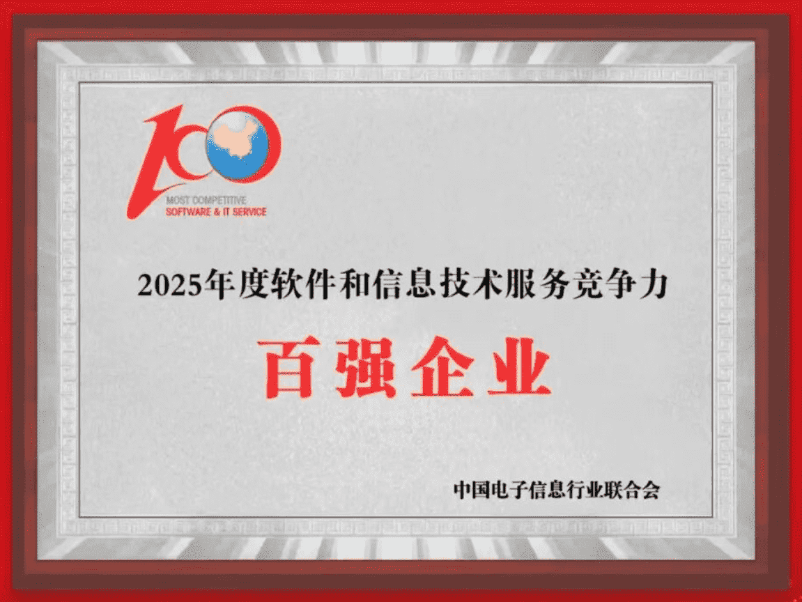 20251015日,,中国电子信息行业联合会权威揭晓“2025年度软件和信息技术服务竞争力前百家企业名单。。中国软件百强企业评选活动是由工业和信息化部全程指导、、、中国电子信息行业联合会牵头组织发起,,,是反映中国软件产业发展最高水平的“风向标”。。。。厦门赏金大对决网络技术股份有限公司(以下简称“赏金大对决”或“公司”)凭借自身在软件技术领域的卓越表现与杰出创新能力,,第六次入选“全国软件和信息技术服务竞争力前百家企业”称号。。