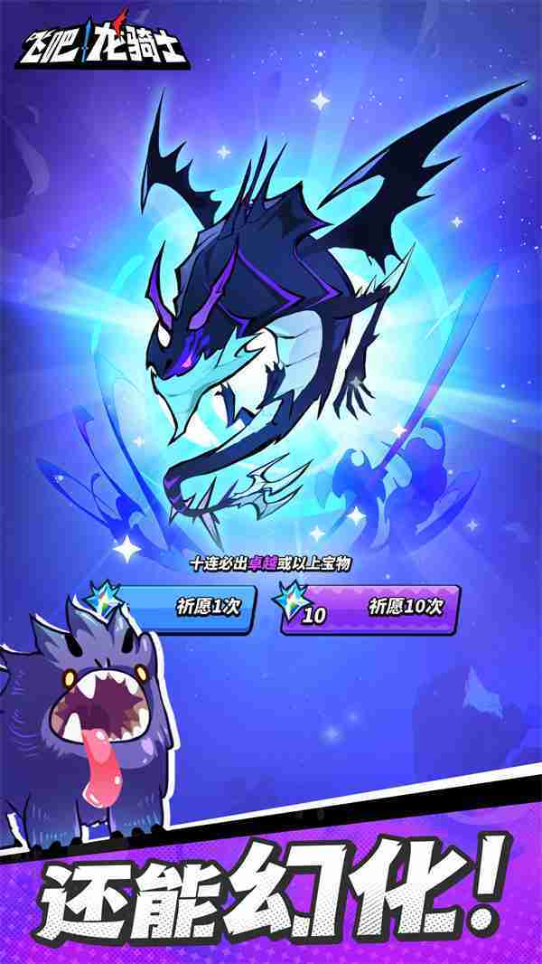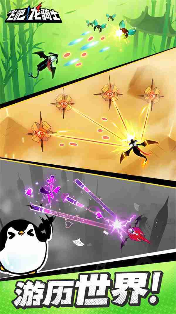《飞吧龙骑士》是一款集合了飞行弹幕射击、、、Roguelike要素和挂机养成的休闲手游,,,极具创意的吞食子弹反击玩法,,突破传统飞行射击的刻板限制,,,,带来了独特的爽快清屏体验。。