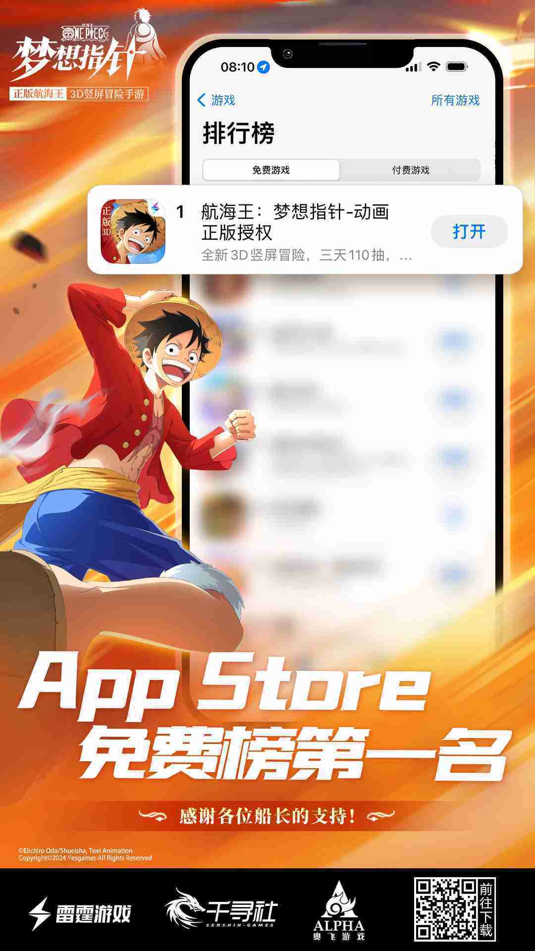 《航海王::::梦想指针》登顶App Store免费榜,,,公测福利汇总!!